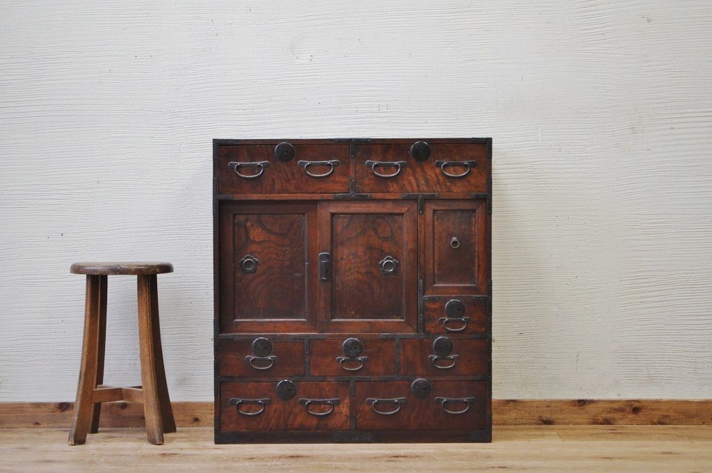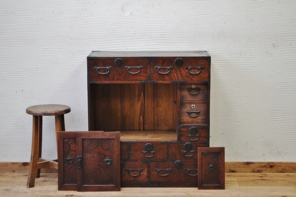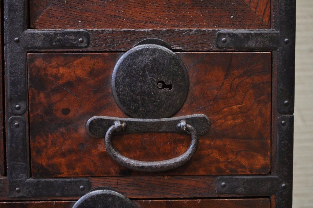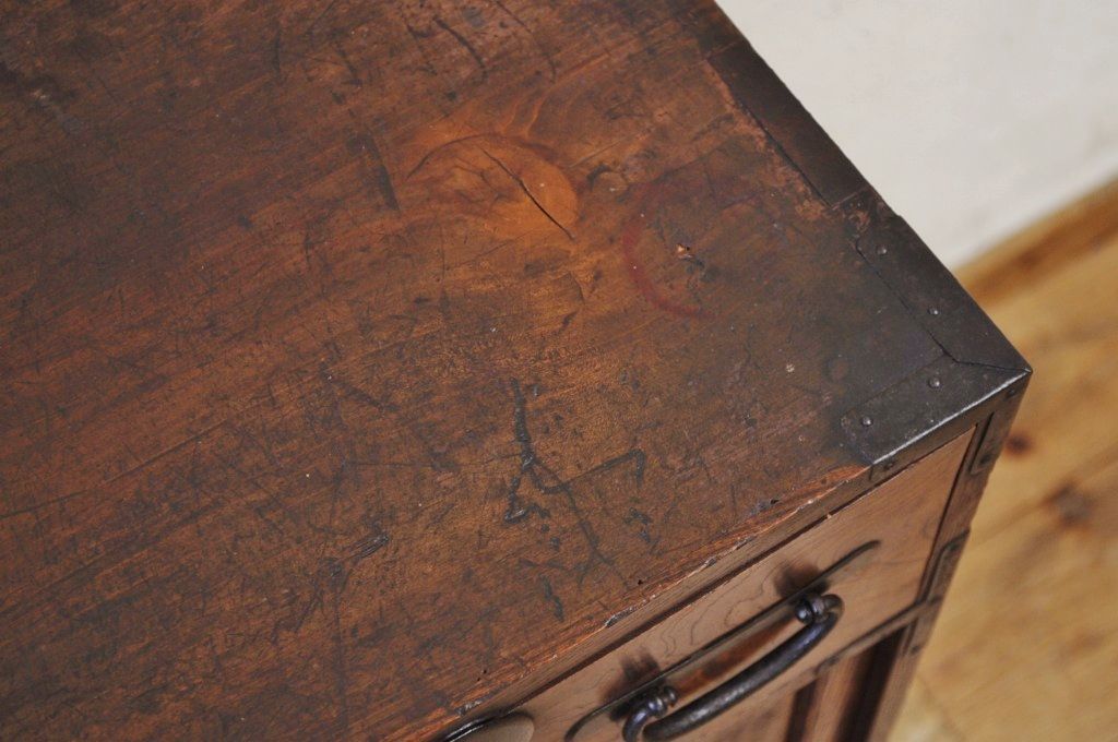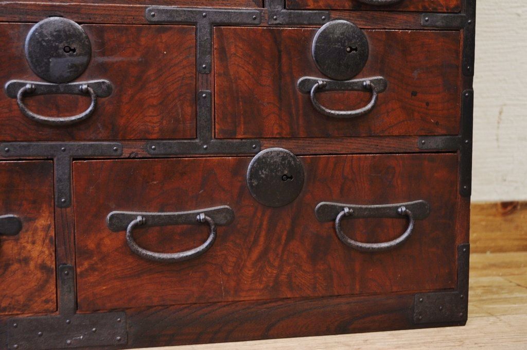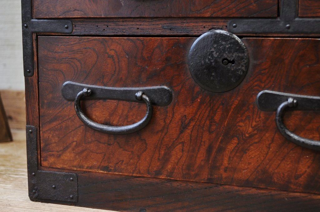 アンティーク家具 前面欅!古い欅材の小振りな帳場小箪笥