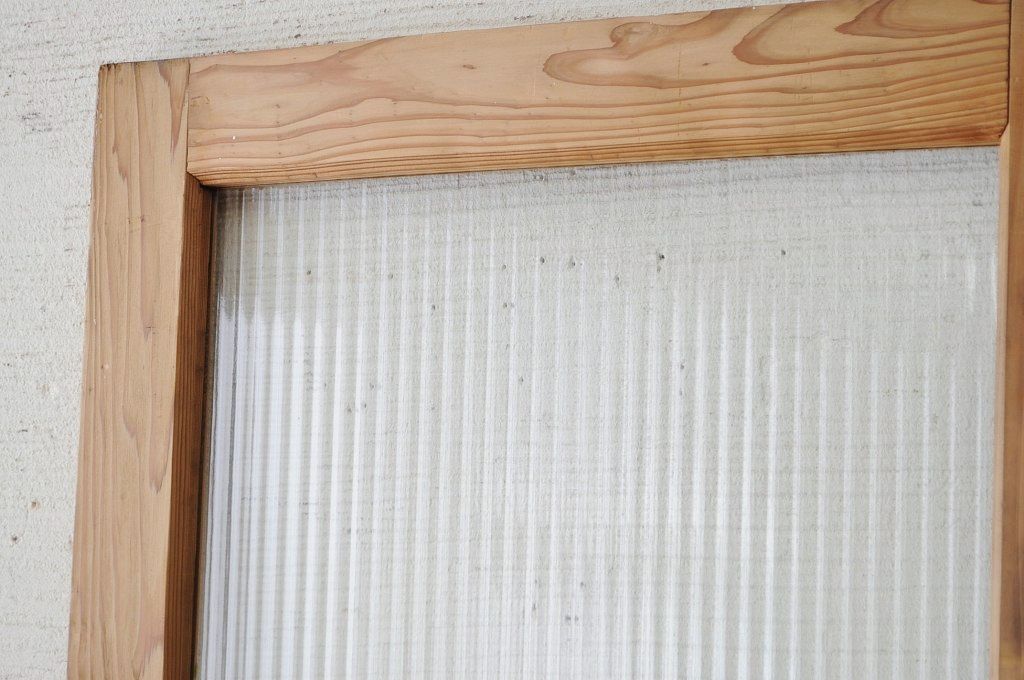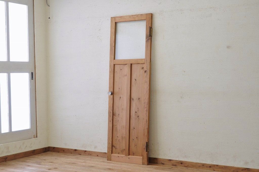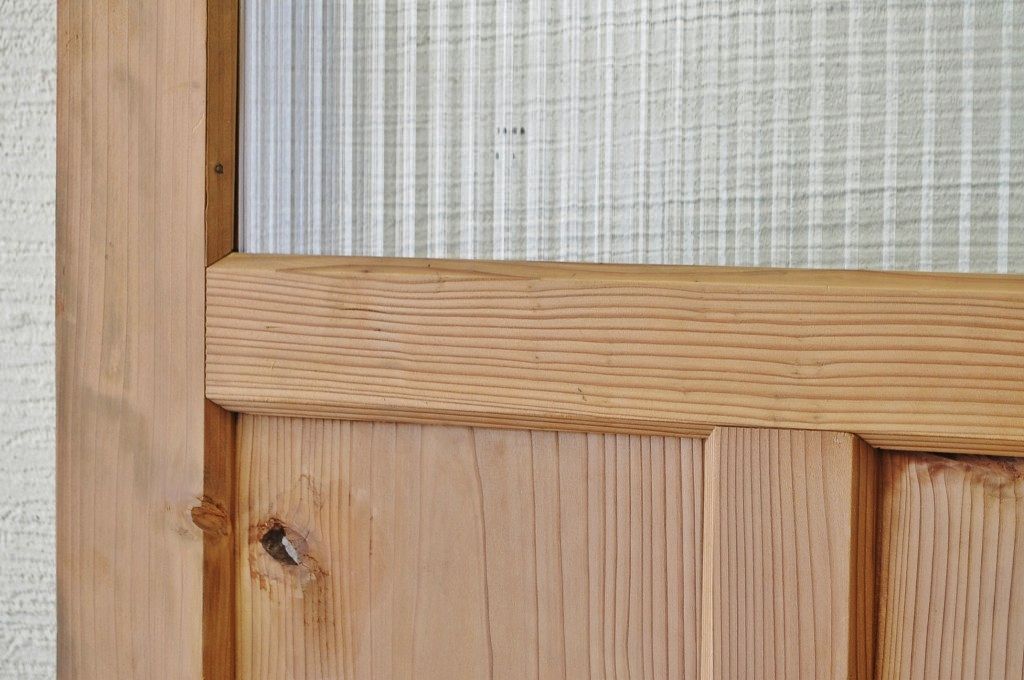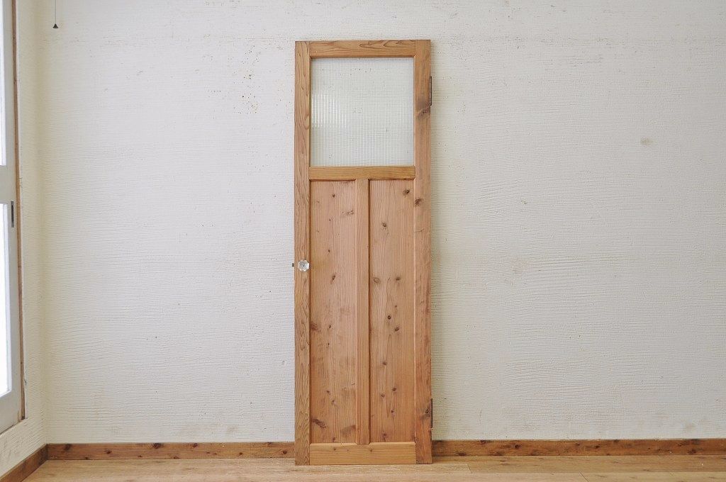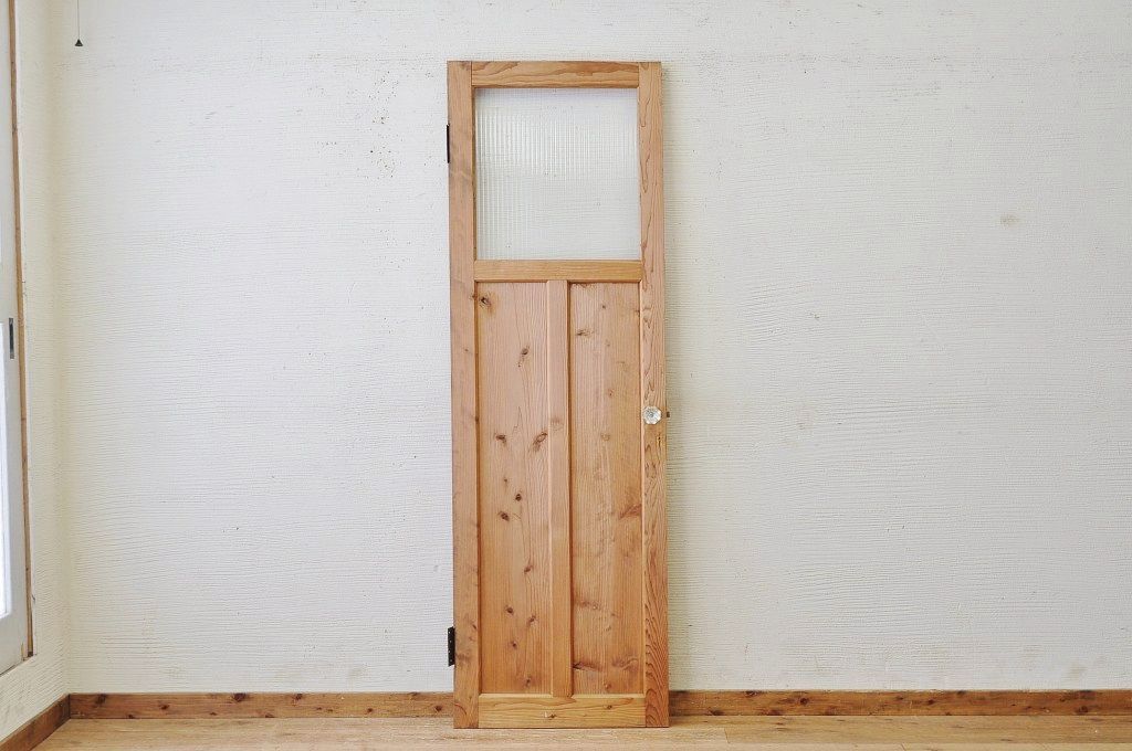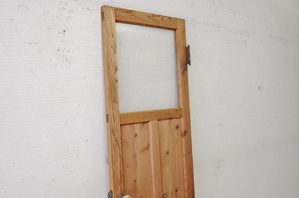古い木味のガラスドアノブのモールガラスドア(扉)です。