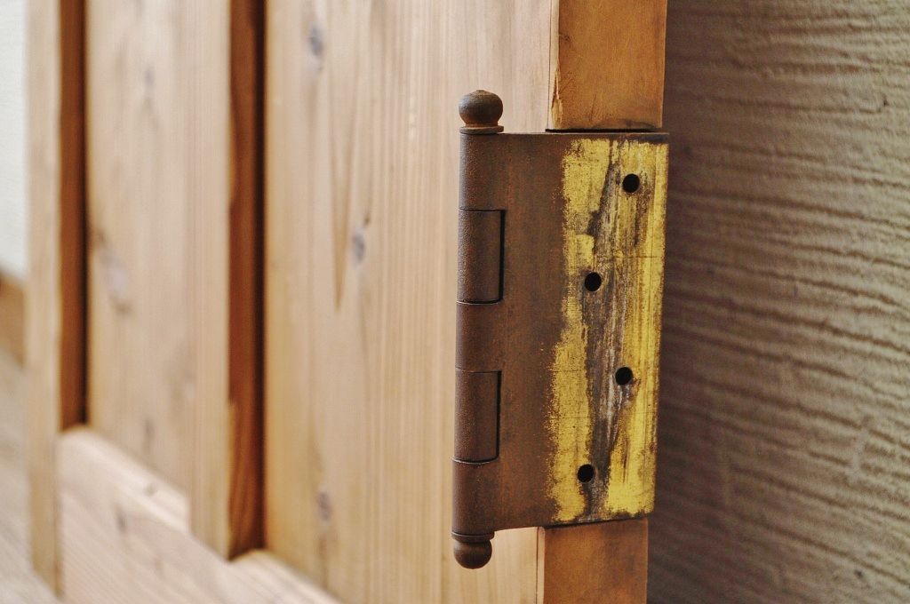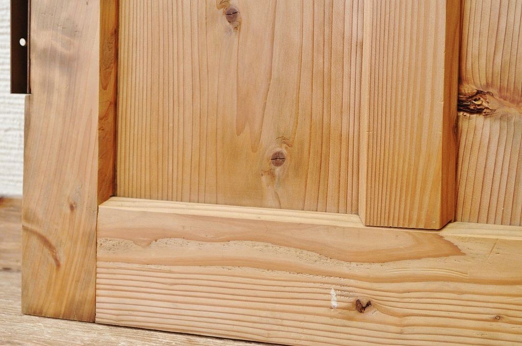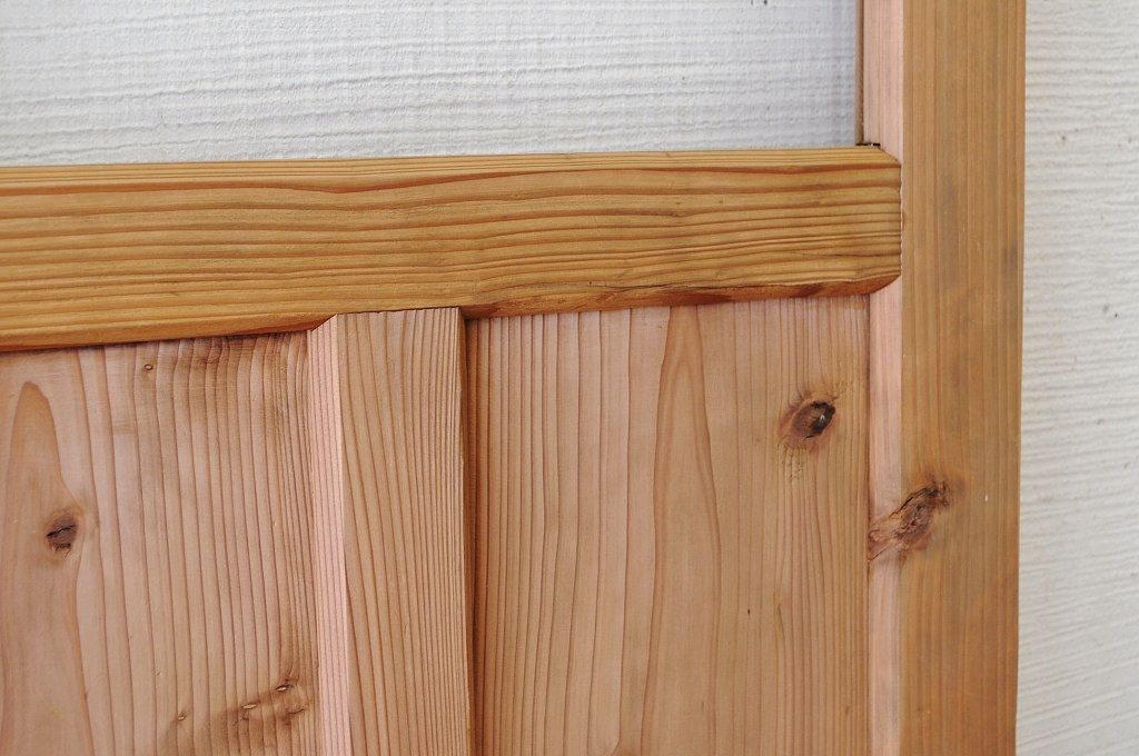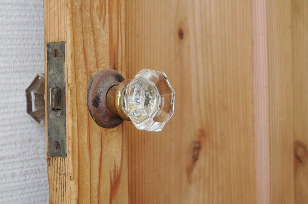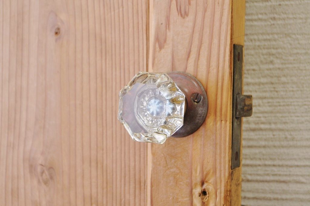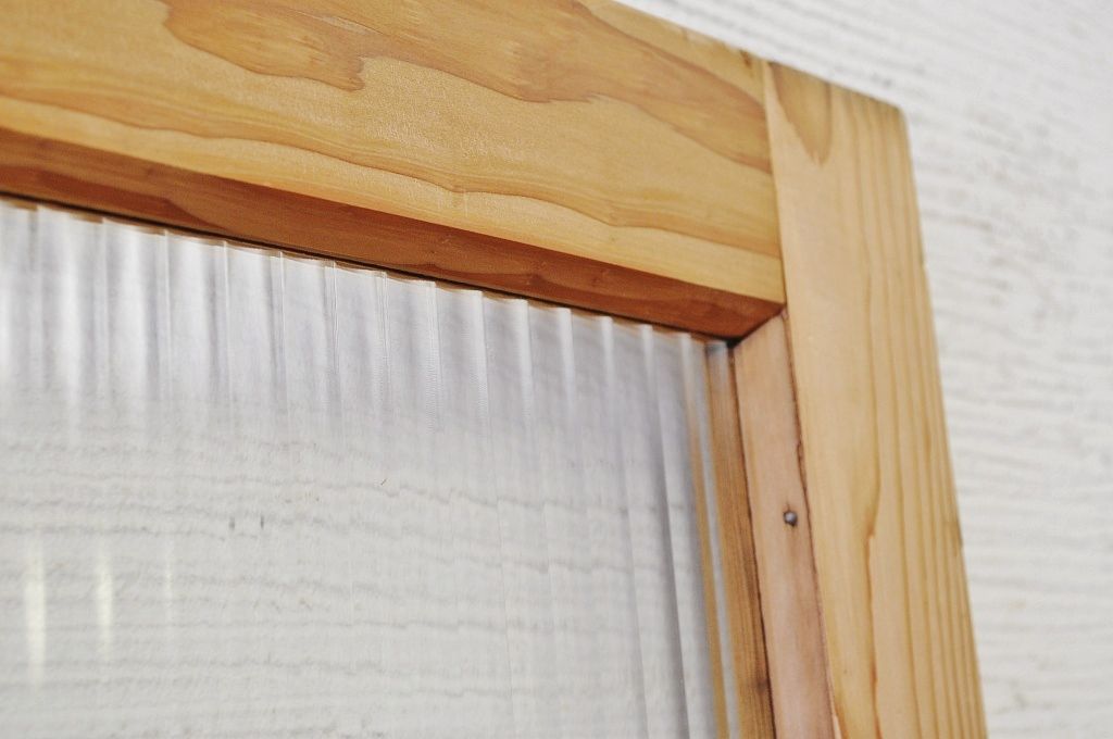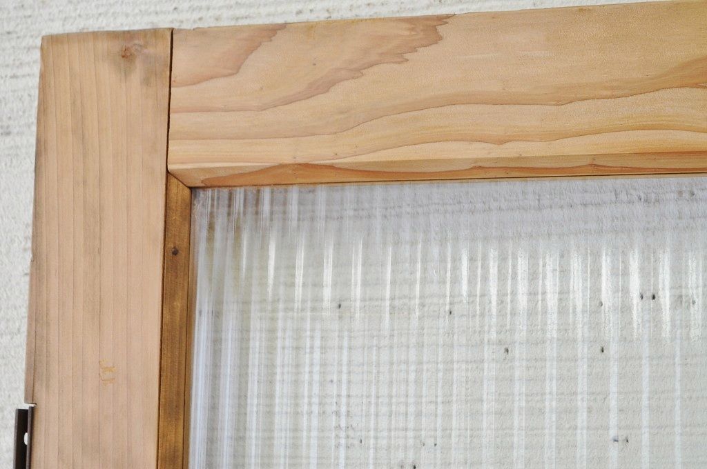 古い木味のガラスドアノブのモールガラスドア(扉)です。