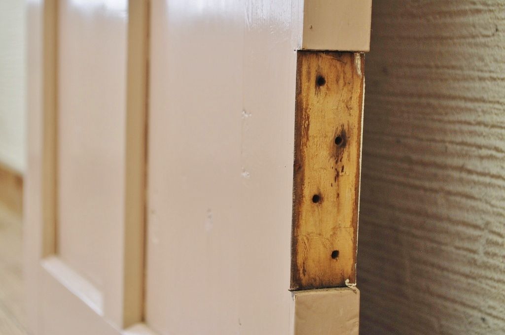 古いペイントのガラスドアノブの銀モールガラスドア(扉)です。