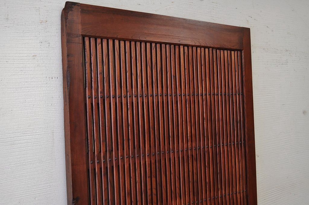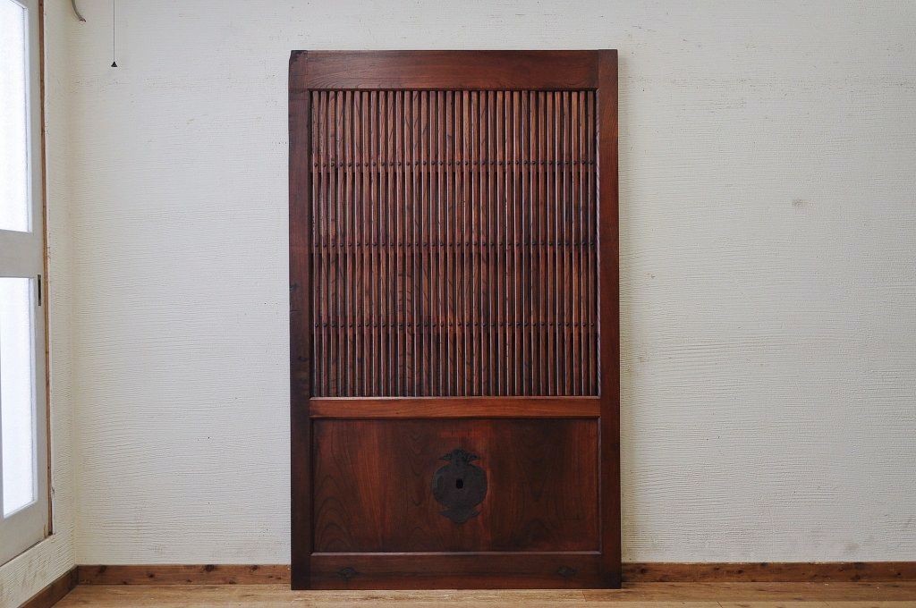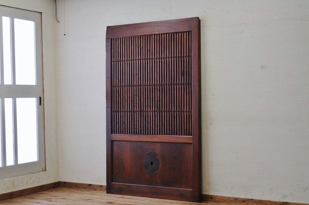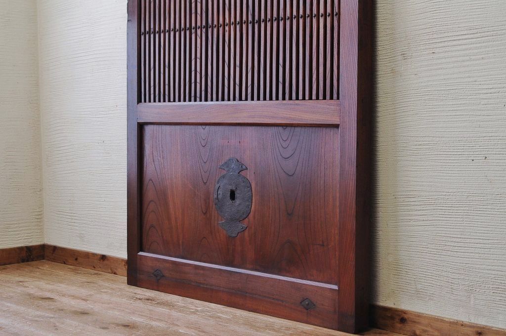 美品!古い欅材の漆塗り格子蔵戸(玄関戸)