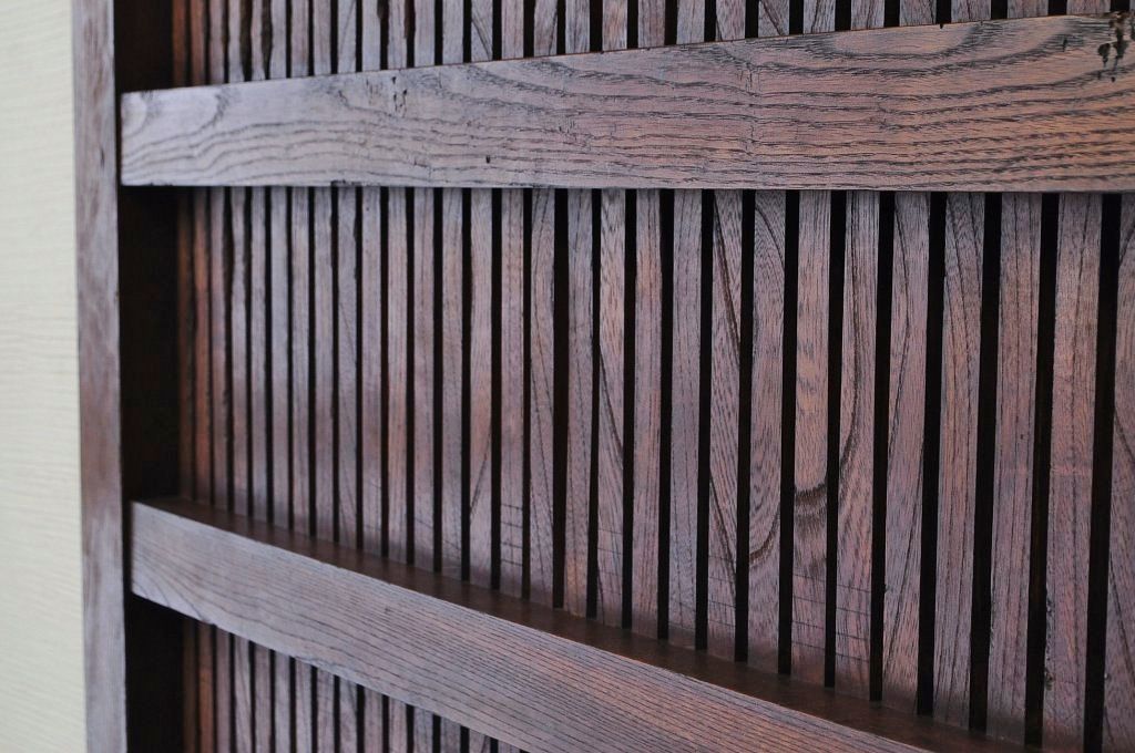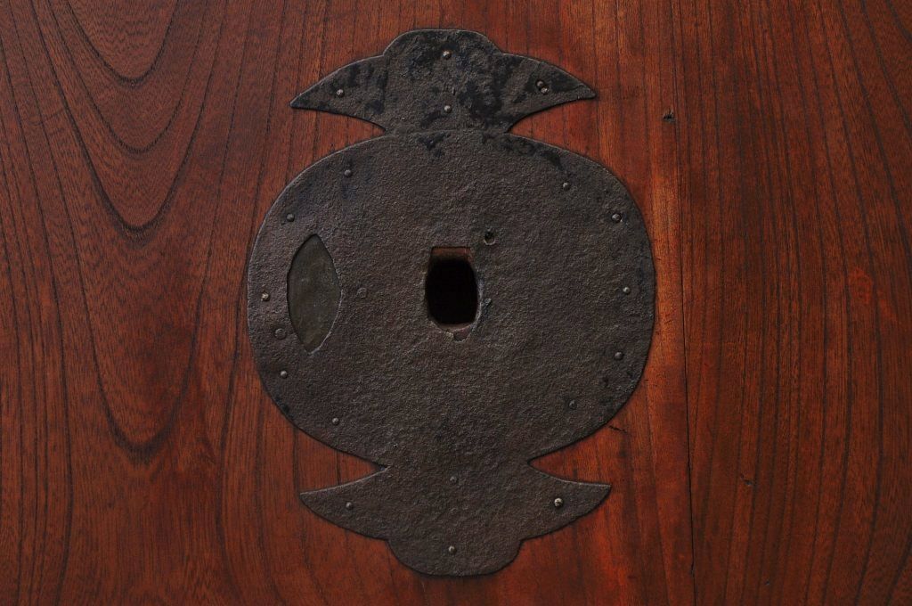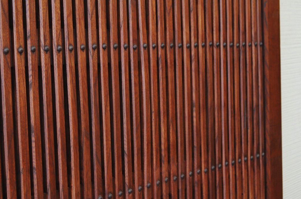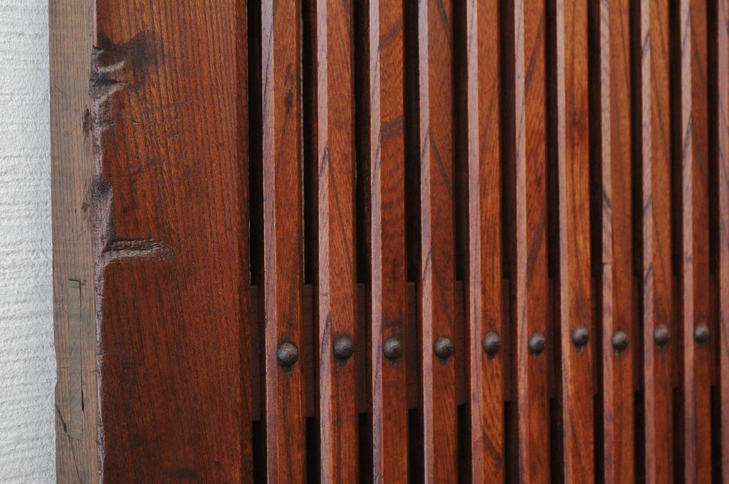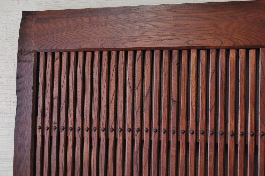 美品!古い欅材の漆塗り格子蔵戸(玄関戸)