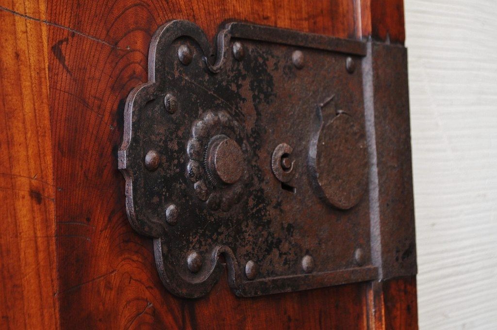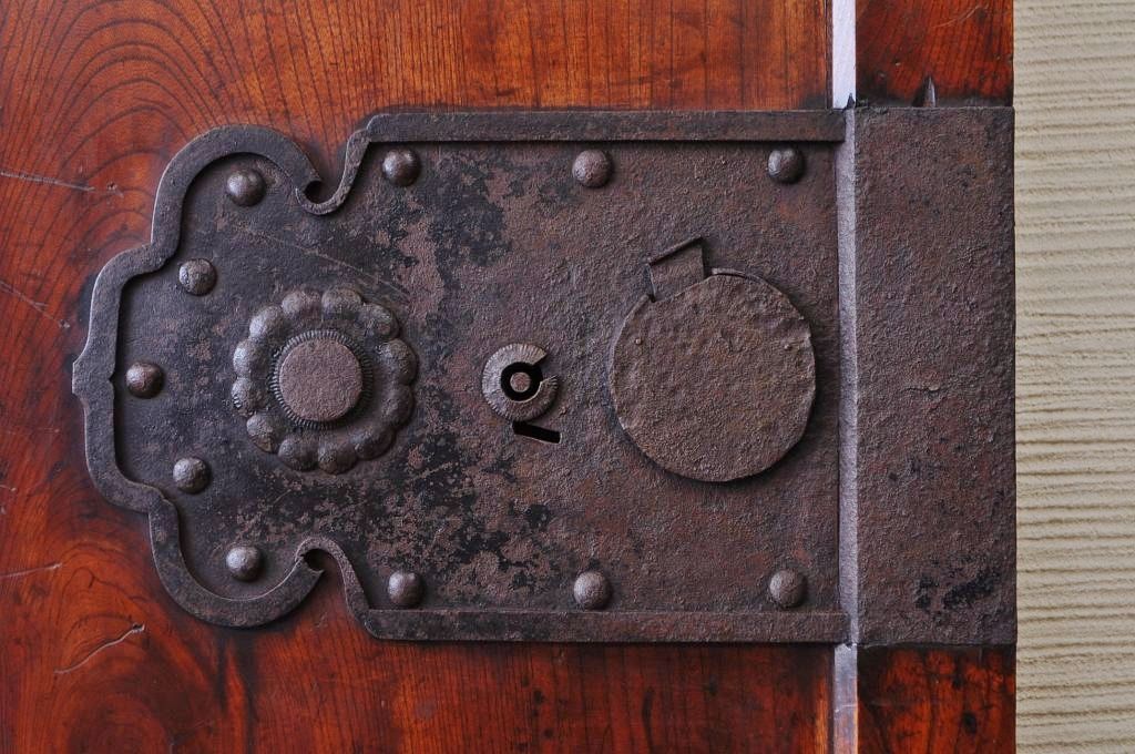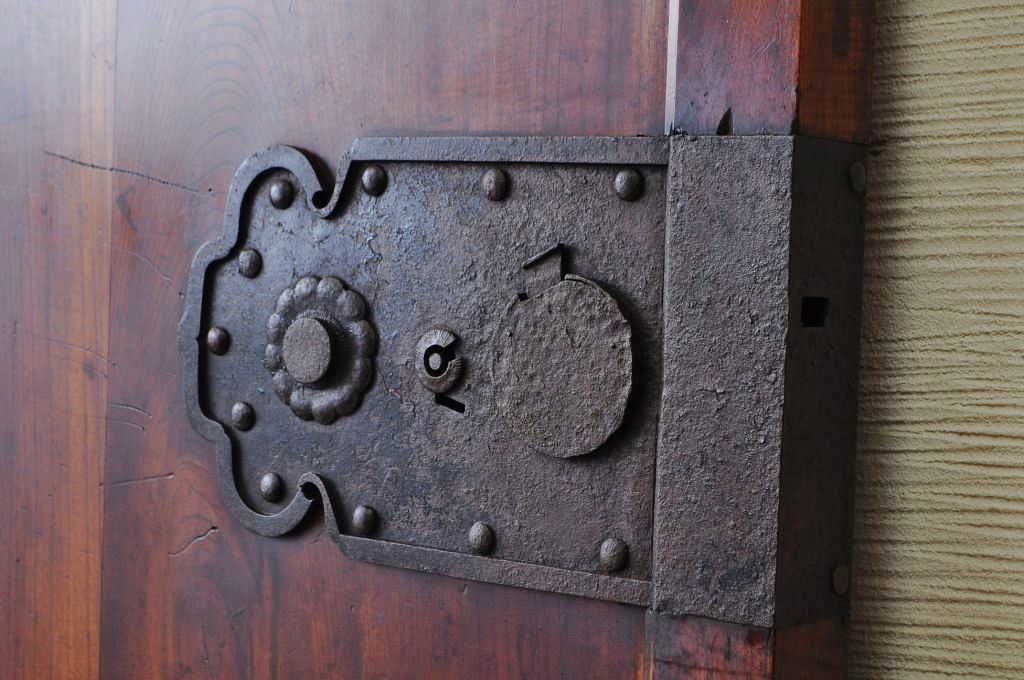 総欅!古い欅材の漆の綺麗な蔵戸(玄関戸)