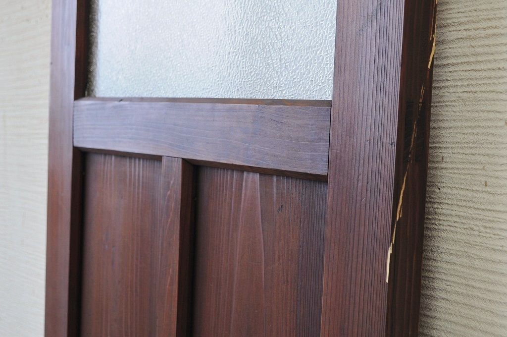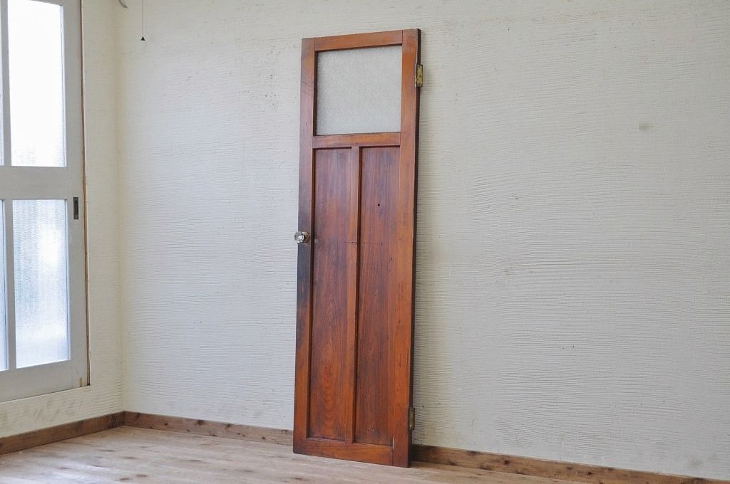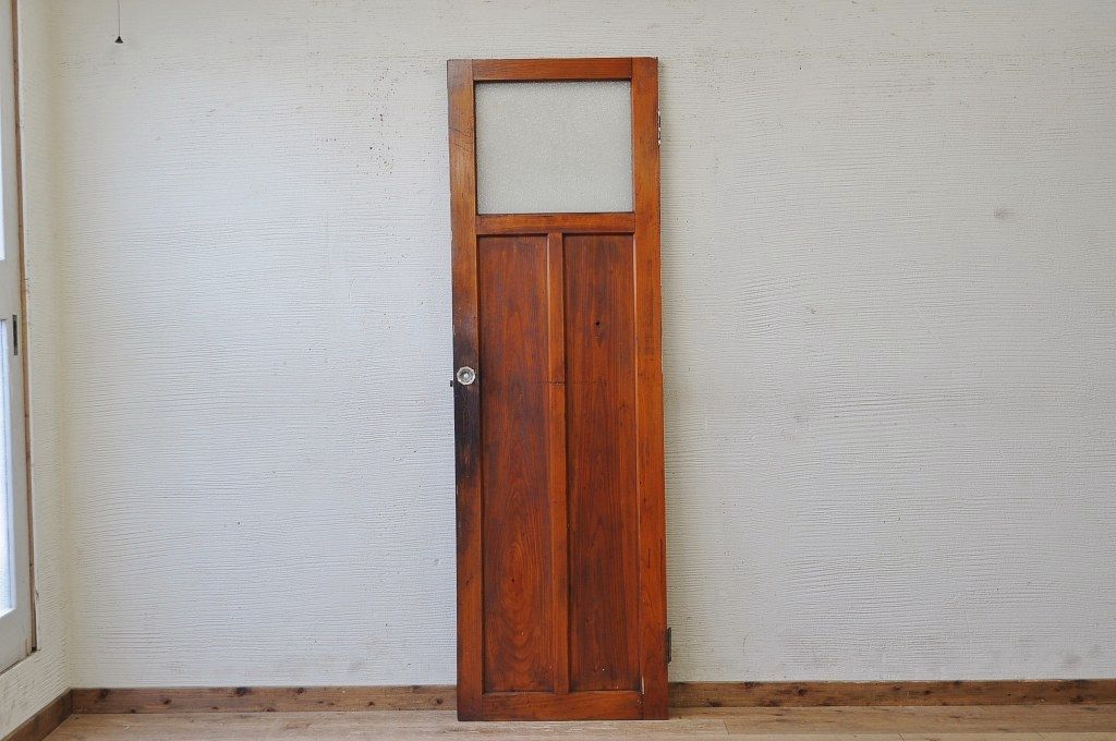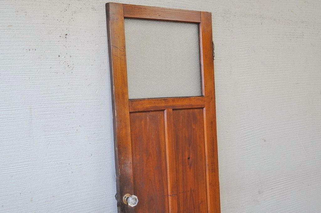 古い木の使い込まれたガラスドアノブダイヤガラス扉です。