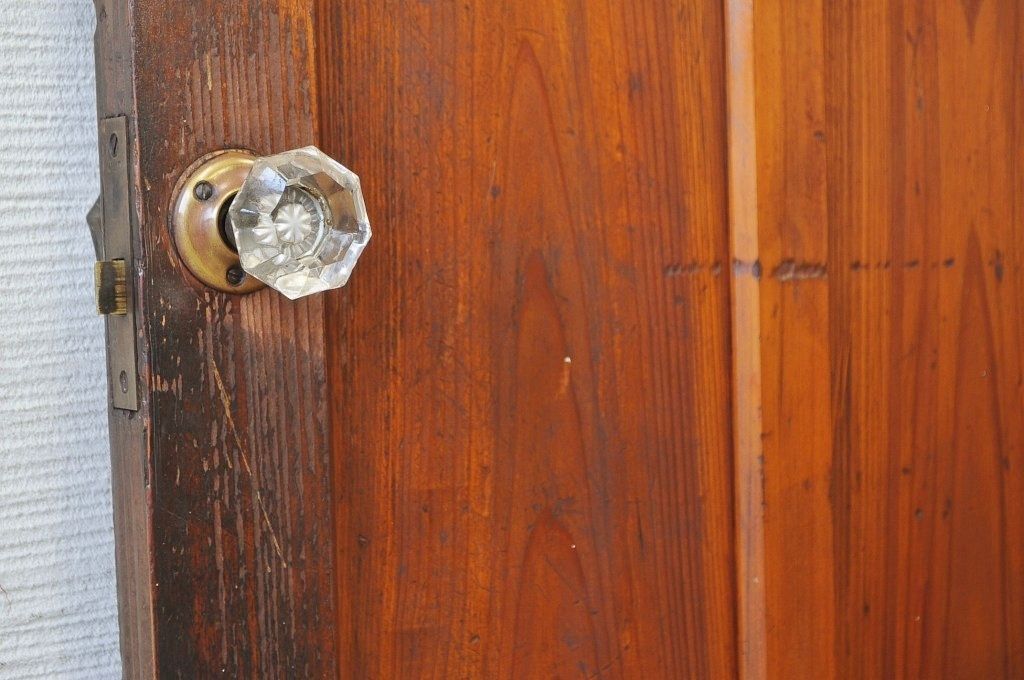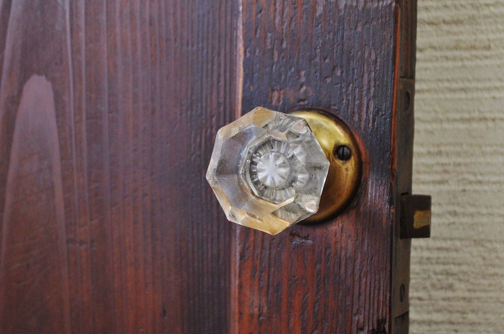 古い木の使い込まれたガラスドアノブダイヤガラス扉1