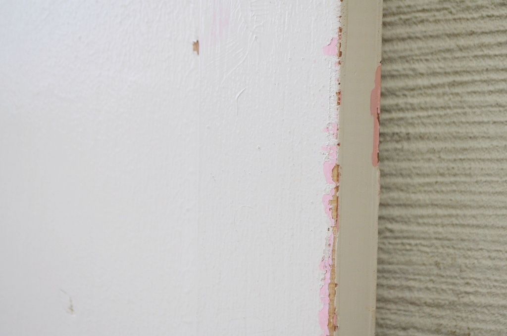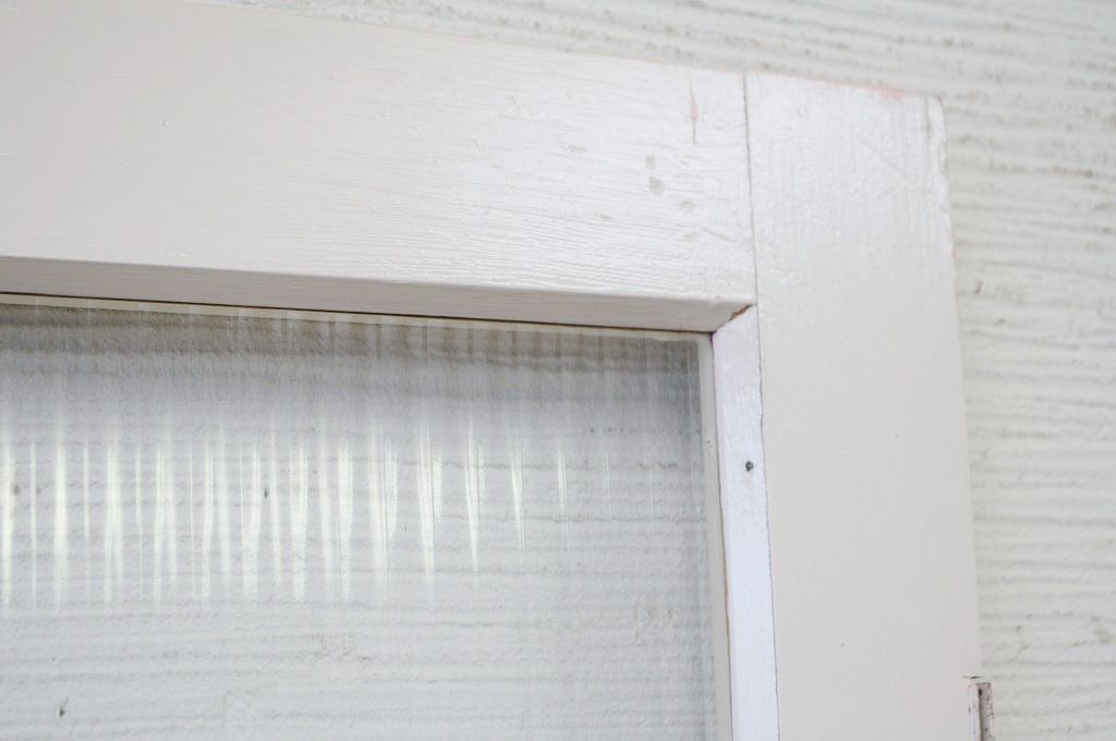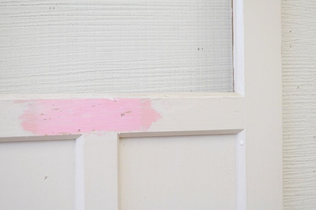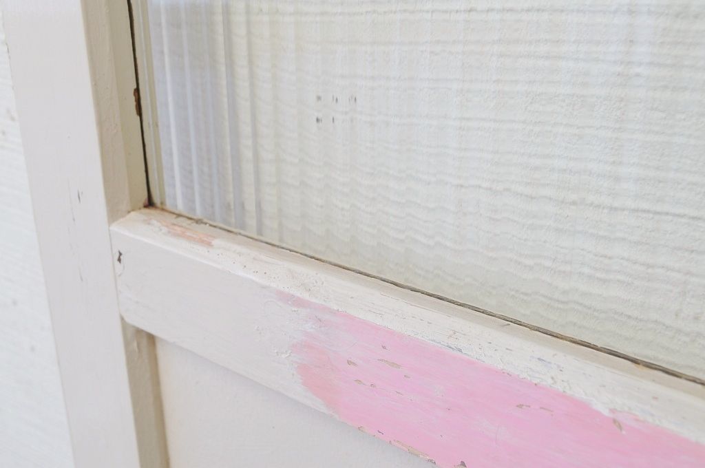 ペンキの剥げたガラスドアノブモールガラス扉です。