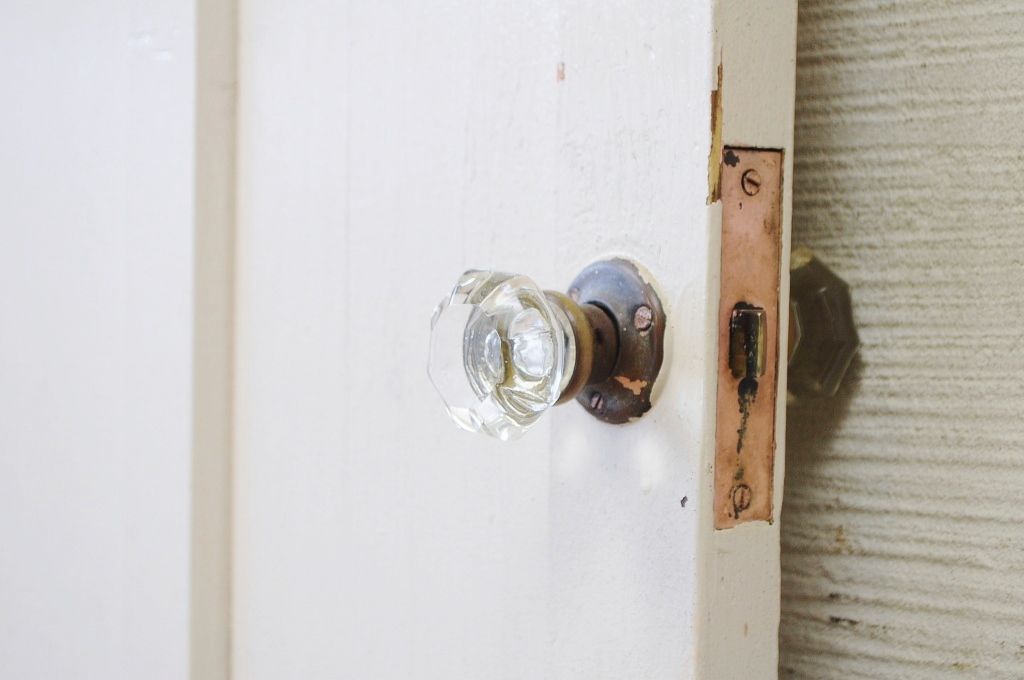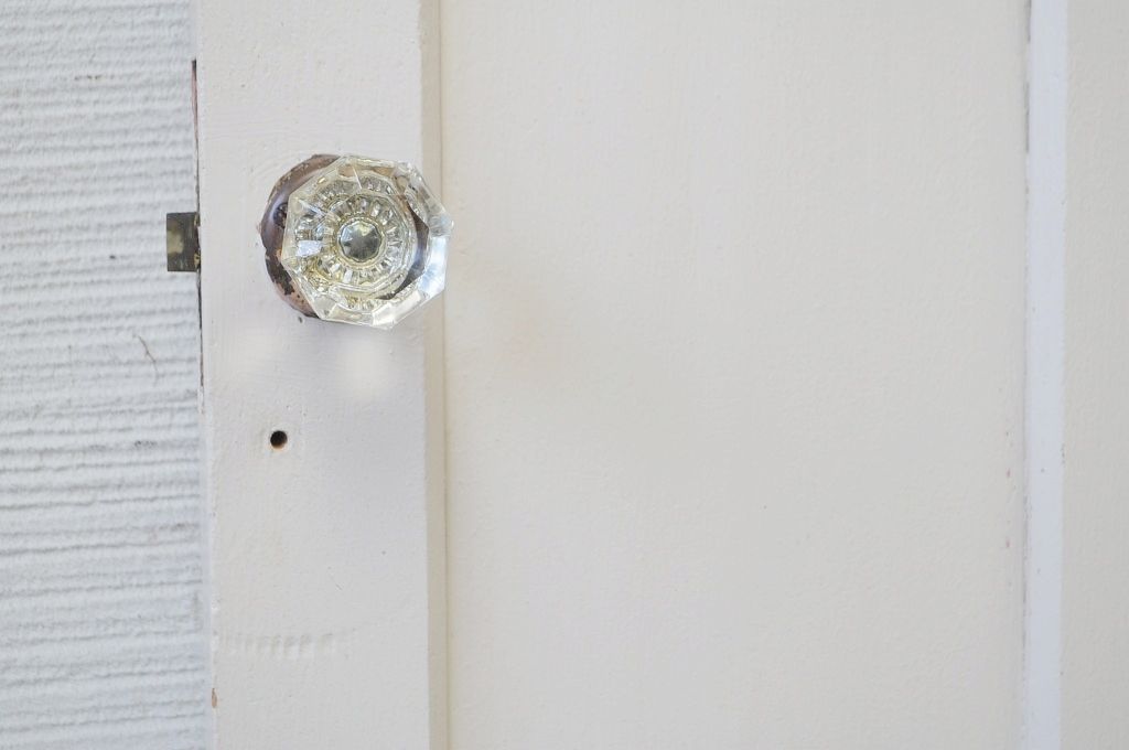 ペンキの剥げたガラスドアノブモールガラス扉7