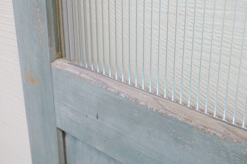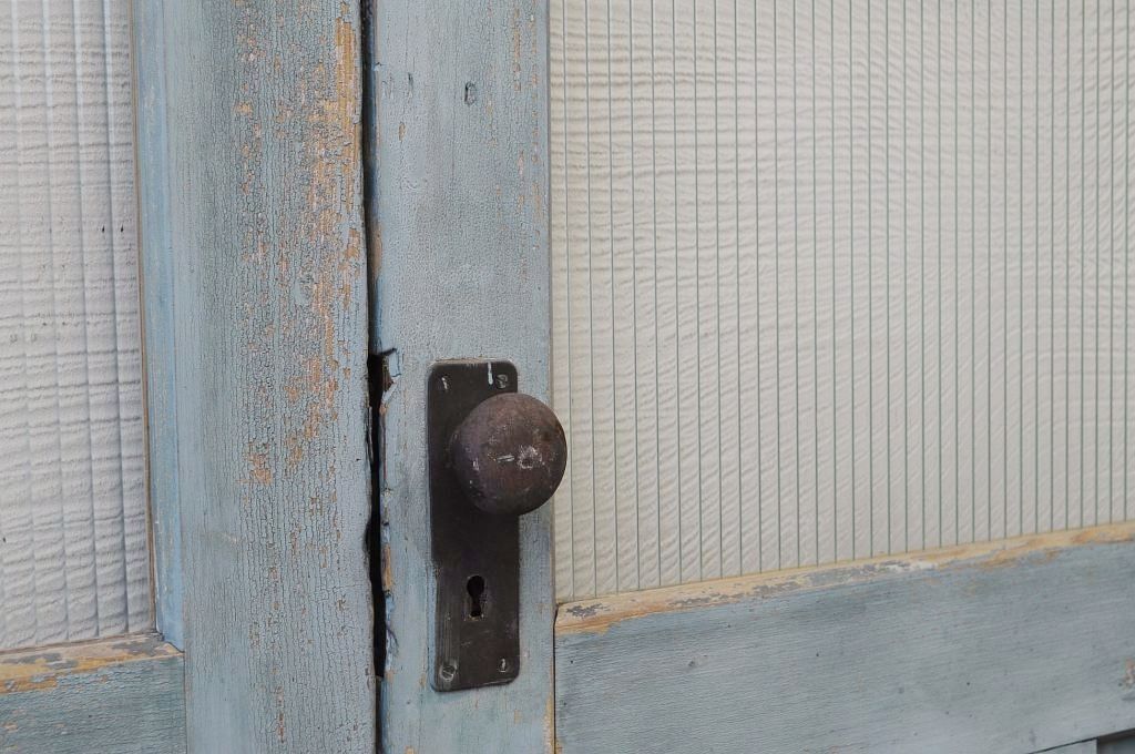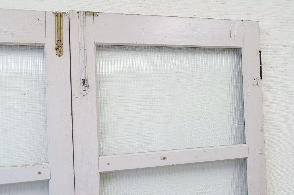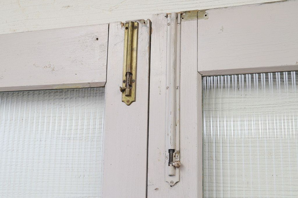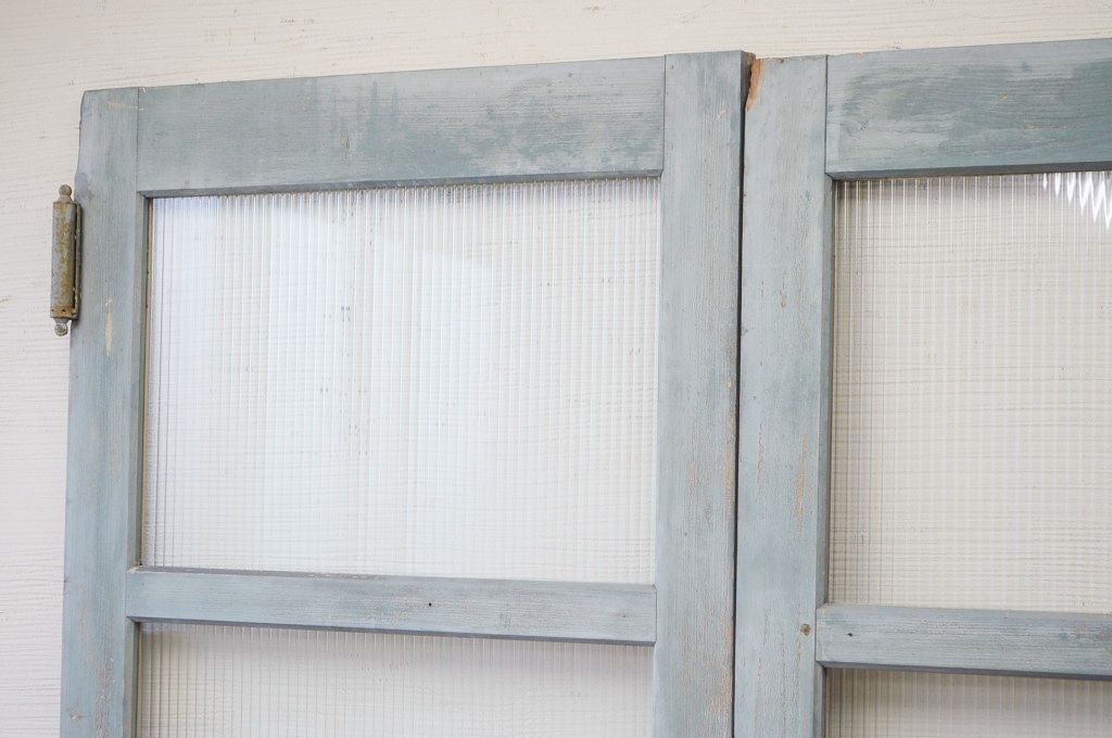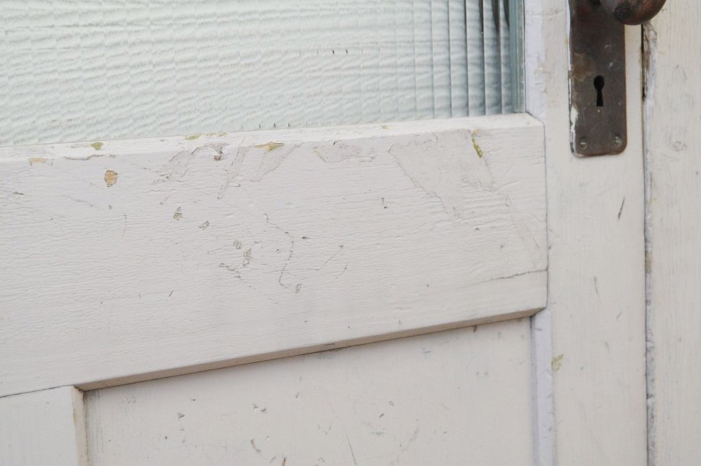 ペンキの剥げた大振りなモールガラス両開きドア(扉)一対