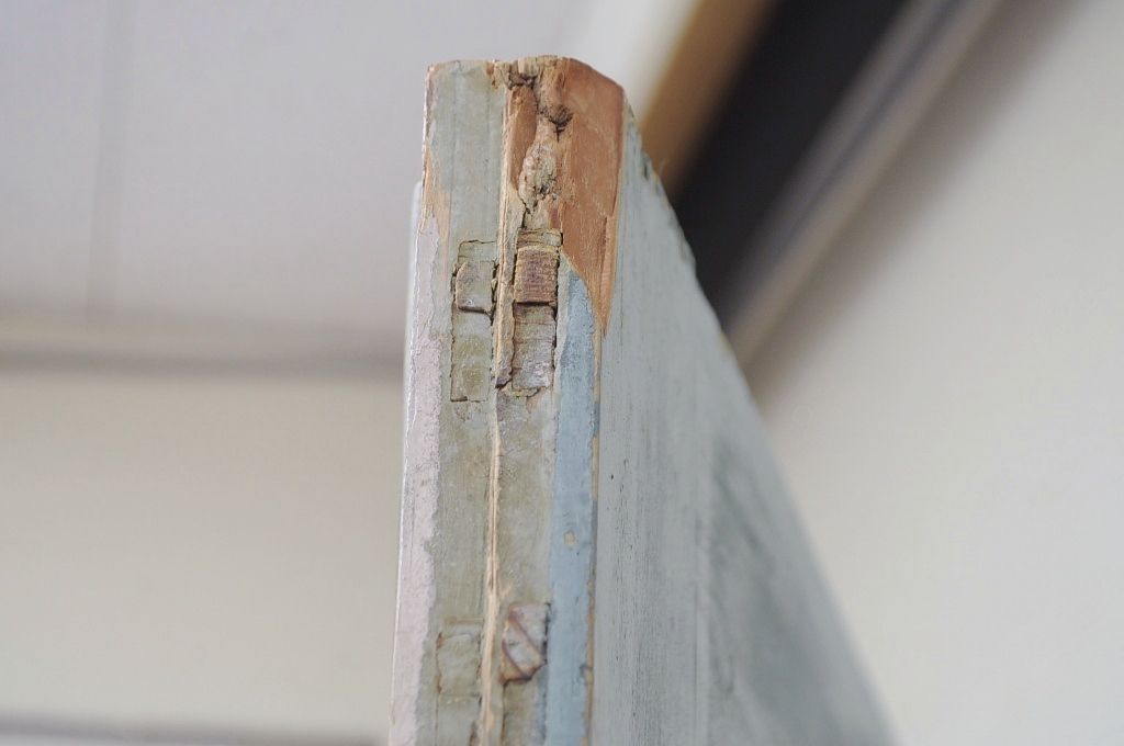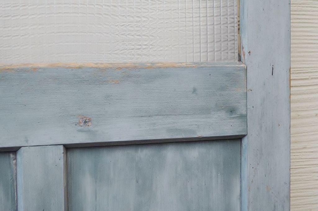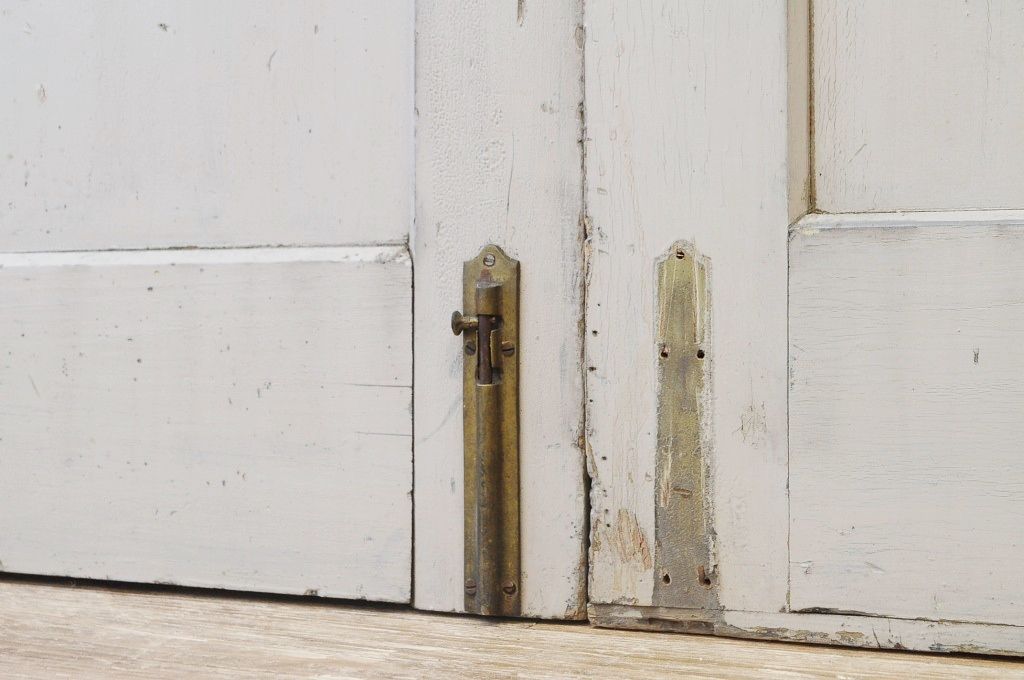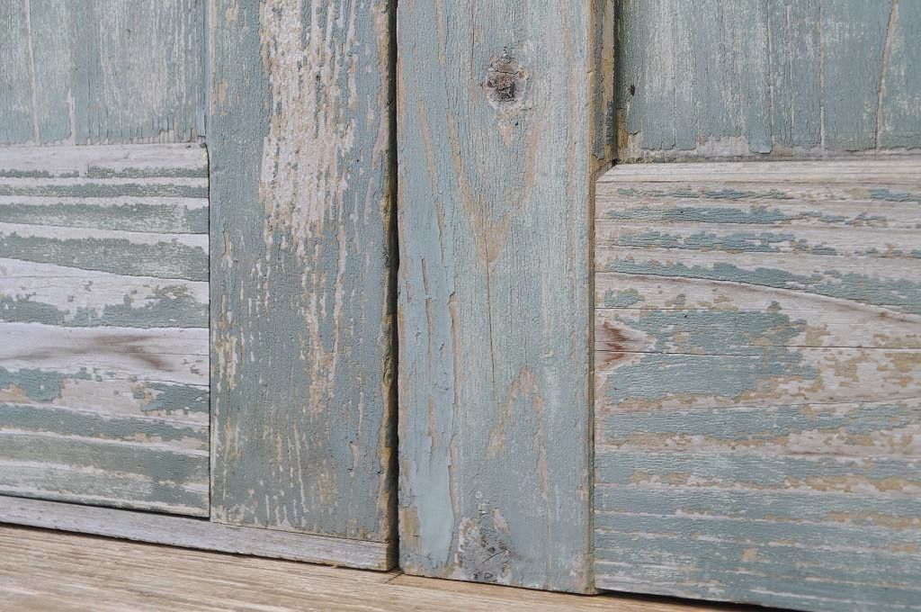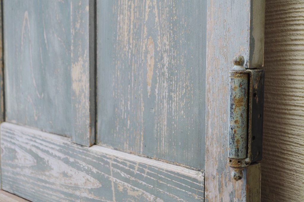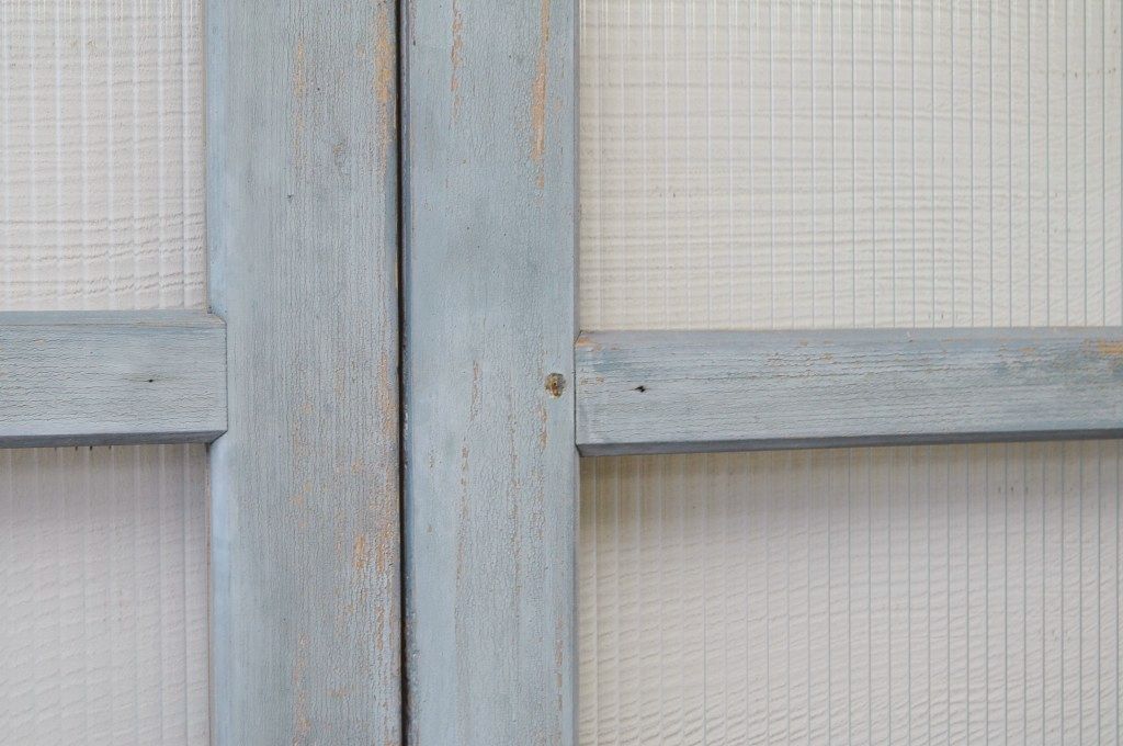 ペンキの剥げた大振りなモールガラス両開きドア(扉)一対