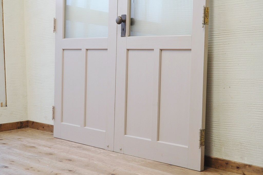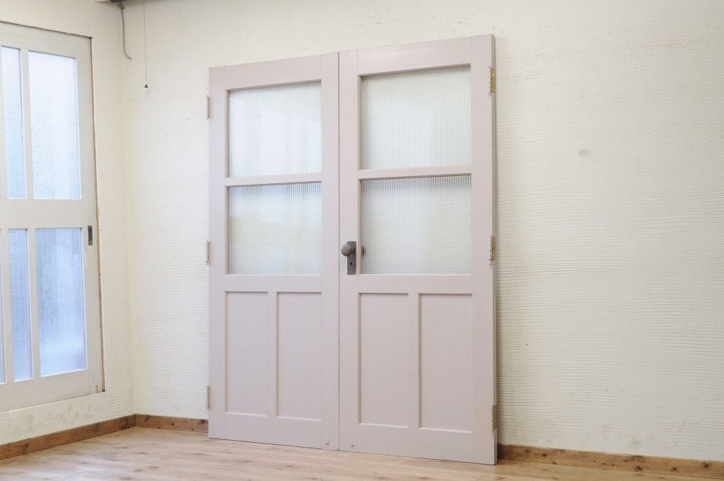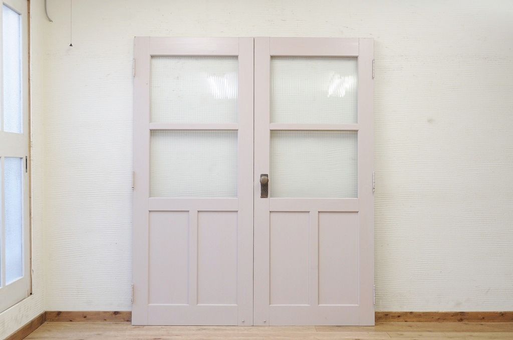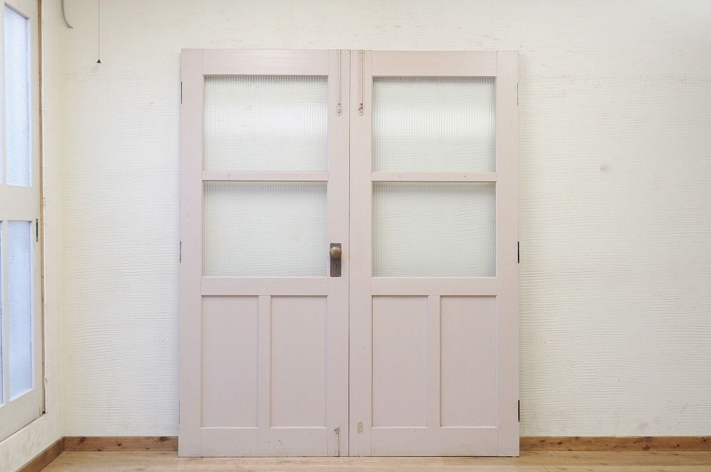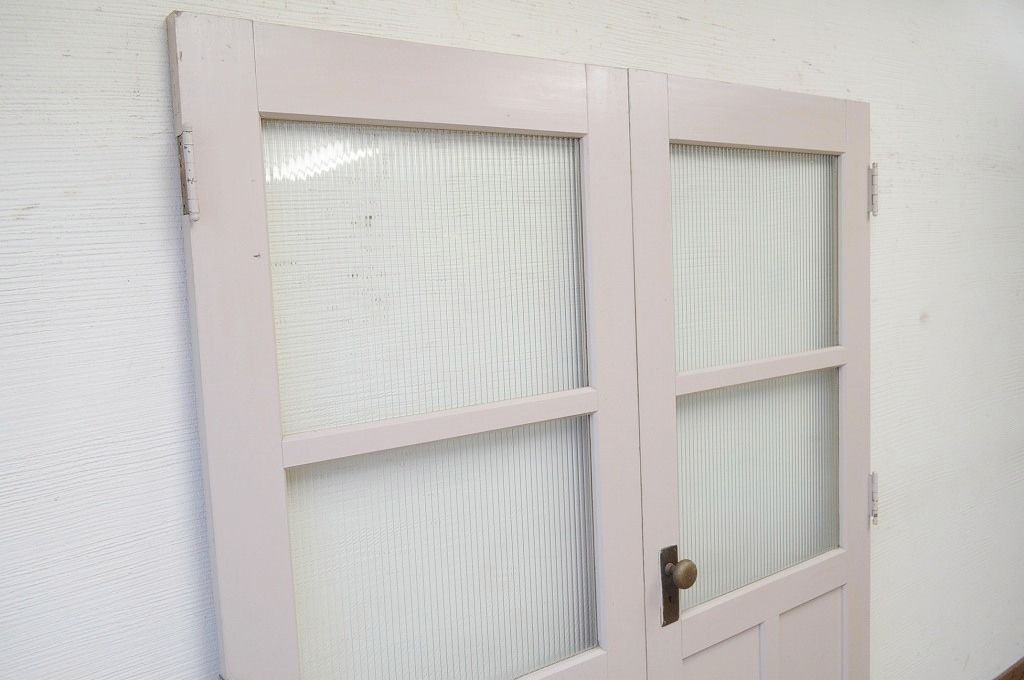 古いペイントのモールガラス両開きドア(扉)一対です。
