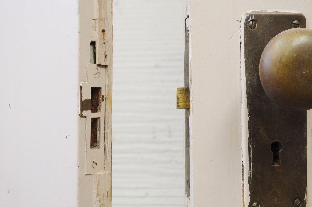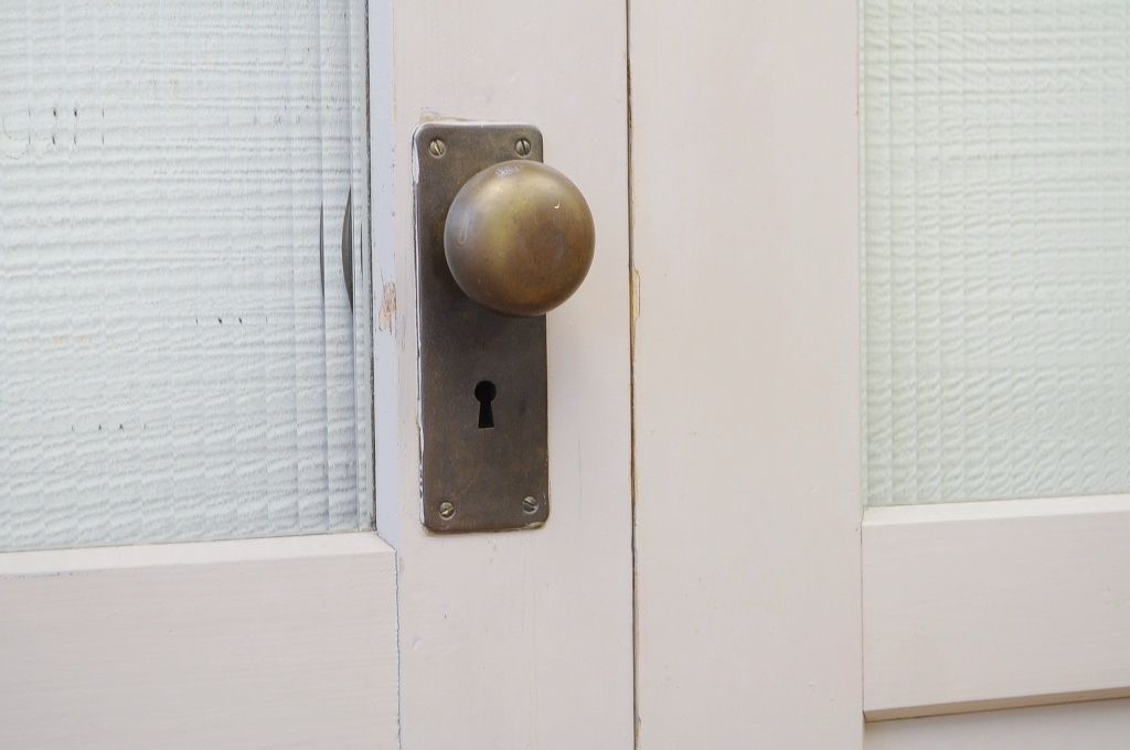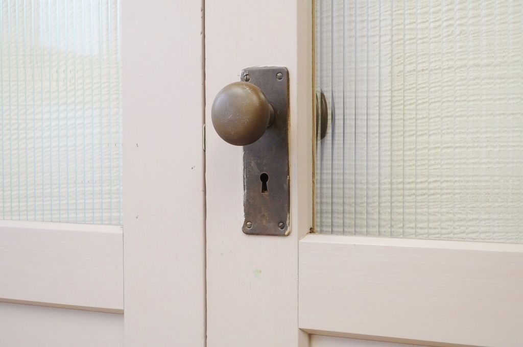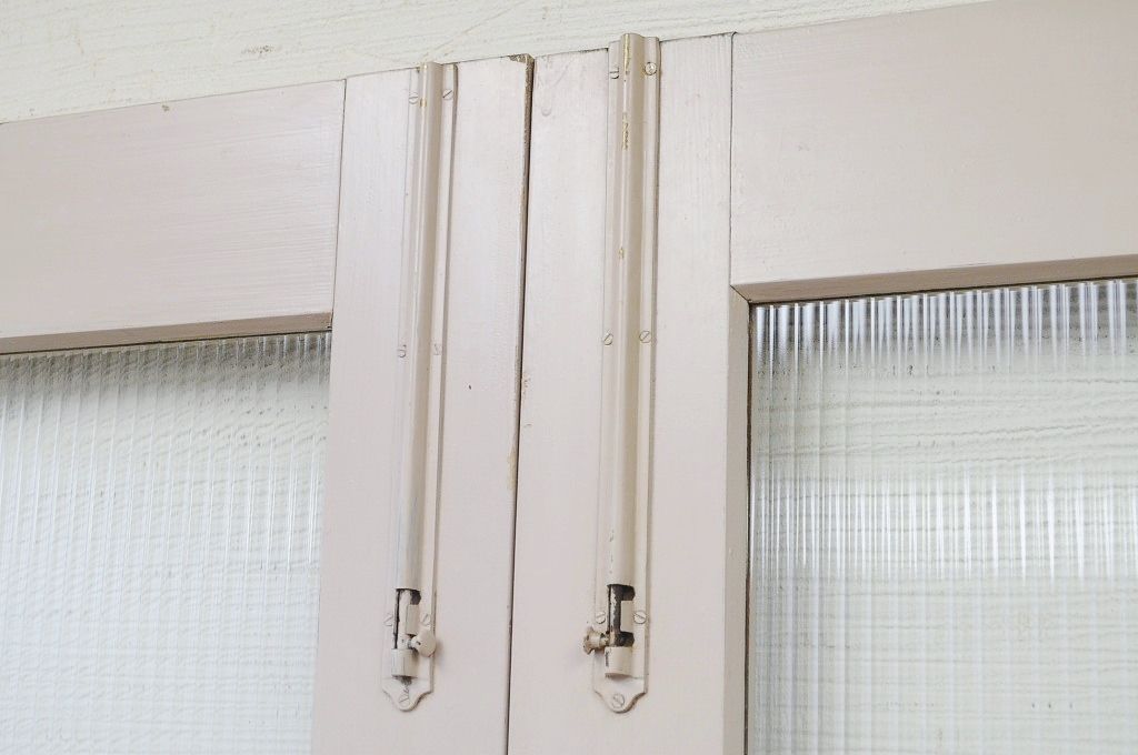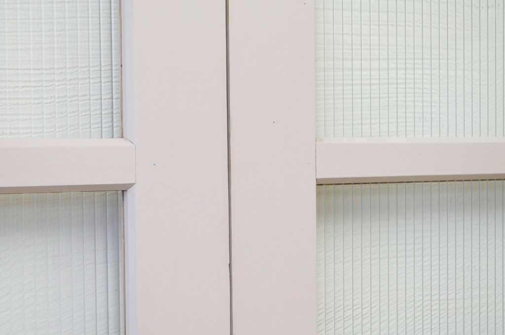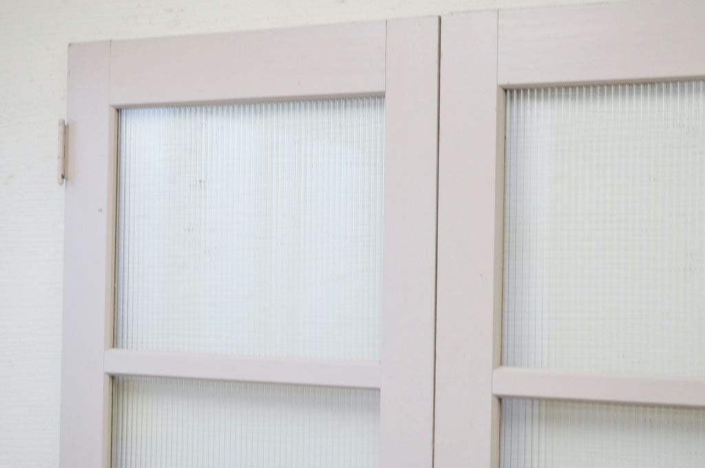 古いペイントのモールガラス両開きドア(扉)一対です。