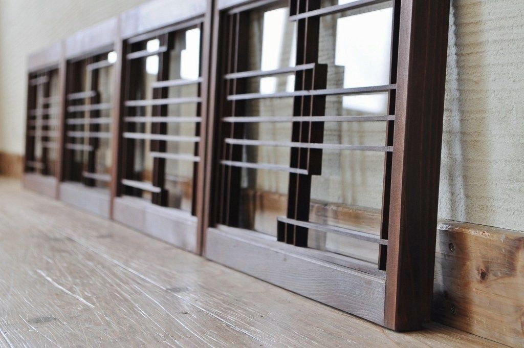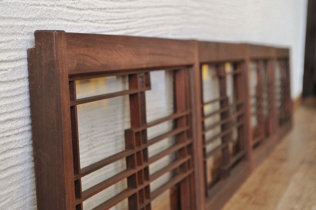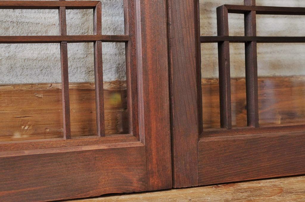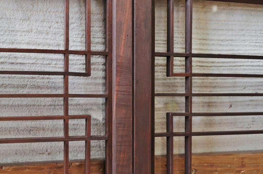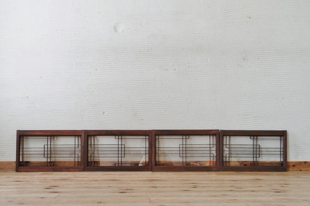 古い木の細工の細かな引き戸(ガラス戸)4枚セット1