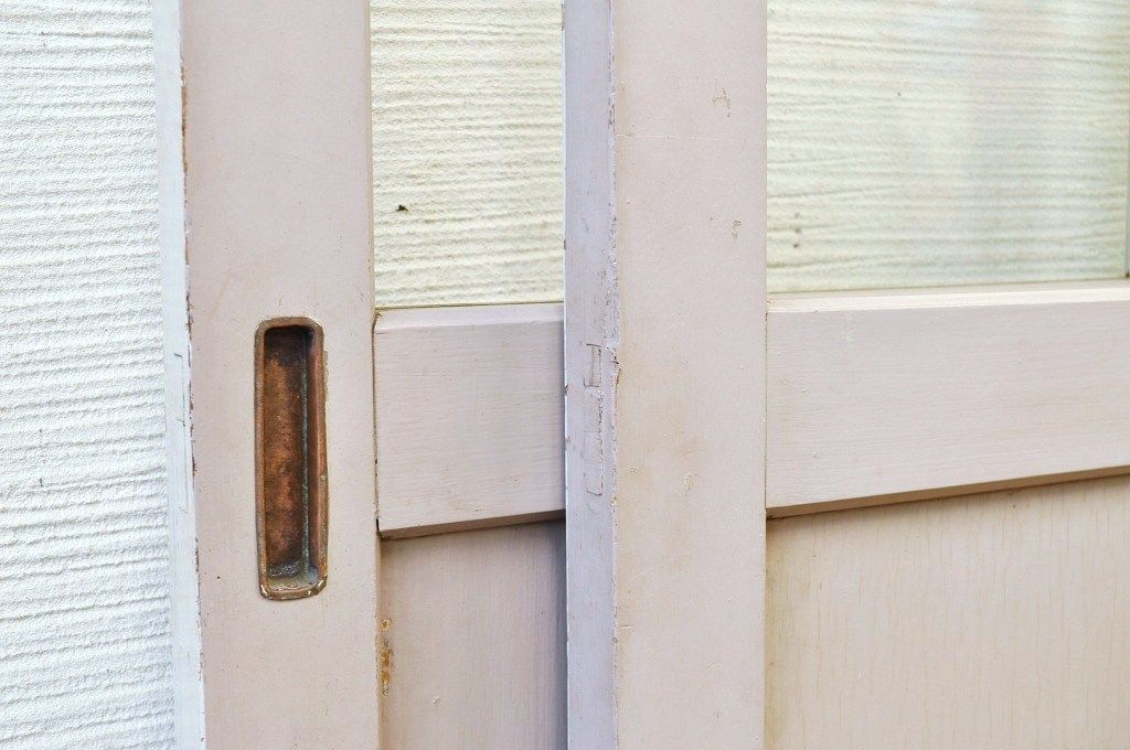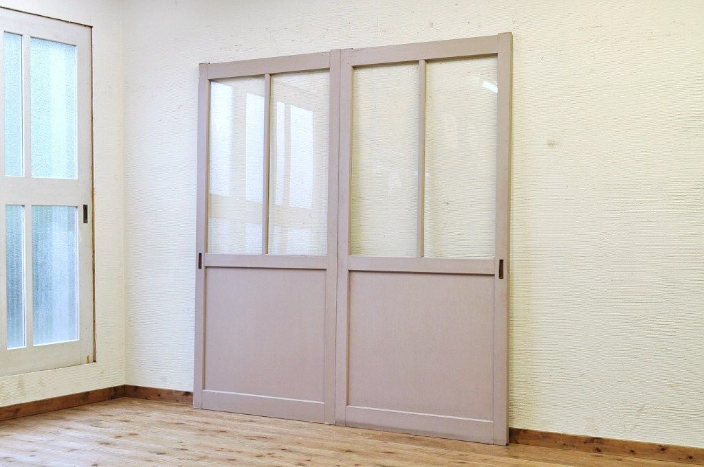 ペンキの剥げたレトロなガラス戸2枚セットです。